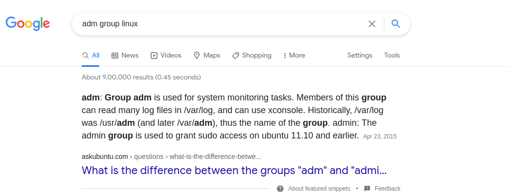 The user web is part of the adm group which means we can read log files which are located in /var/log